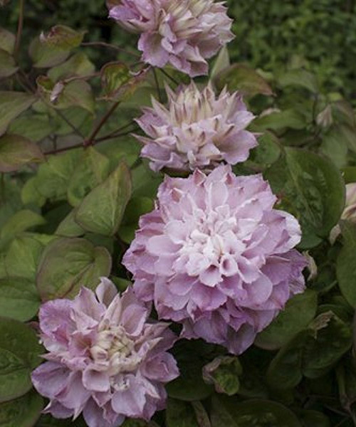 Клематис Dancing Smile (Дансинг Смайл), інша назва Zodasmi - особливої краси, великоквітковий махровий сорт німецької селекції. Представляє собою багаторічну трав'янисту рослину, яка має м'ясисте, міцне, темно-зелене стебло, 200 см у висоту. Для цієї рослини характерні прекрасні, великі (до 15 см в діаметрі), кулясті, які ніби дивляться вгору ніжно-рожеві квіти. Період цвітіння - травень-червень, а повторно відбувається в липні-серпні. Росте на багатому, розпушеному і помірно зволоженому ґрунті. Надає перевагу добре освітленим сонцем ділянкам. Має приємний аромат квітів.