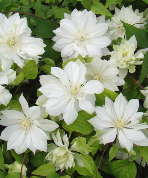 Клематис Yukiokoshi (Юкіокоші) - незвичайний великоквітковий махровий сорт японської селекції. Квіти завжди махрові, великі (12-14 см), складаються з 30-50 пелюсток. Пелюстки білі, химерно закручені з нерегулярними зеленими вкрапленнями. Жовті пильовики тичинок на лимонно-зелених нитках. Цвіте в травні-червні і повторно в серпні-вересні. Повторне цвітіння більш скромне, але квіти махрові як навесні, так і восени. Зростання помірне. Висота дорослої рослини 2-2.5 метра. Вимагає опори, за які чіпляється, закручуючись довгими черешками листя. В якості опори може використовувати чагарники і низькі дерева. Повністю зимостійкий в умовах України.