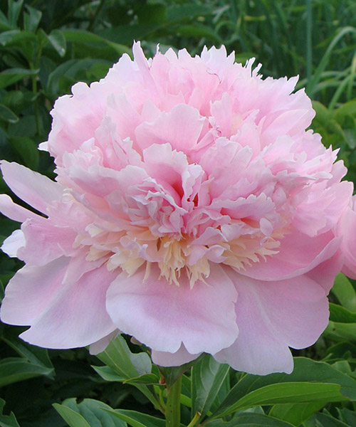 Півонія Angel Cheeks - трав'янистий сорт з дуже великими махровими, кулястими квітами. Бутони нібито густо набито пелюстками ніжно-рожевого кольору, з кремово-жовтим пояском. Чарівне цвітіння цього сорту полонить з першого погляду. Діаметр квітів 16-20 см, висота куща до 100 см. Під час цвітіння кущі бажано підв'язувати, так як під вагою великих бутонів, стебла лягають на землю. Квіти мають приємний солодкуватий аромат. Чудово підходить для оформлення клумб і бордюрної посадки. Висаджувати півонії можна з початку квітня до кінця травня, а також восени з кінця вересня і до листопада. Для цього викопують ями глибиною і шириною 50-60 см на відстані 90-100 см один від одного. При посадці в яму необхідно додати компост, перегній і деревну золу. Після посадки добре полити. Глибина посадки повинна бути 4-5 см над бруньками відновлення.