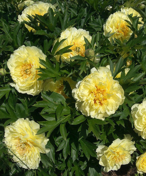 Півонія Bartzella - гібрид трав'янистих і деревовидних півоній. Бутони невластивого півонії яскраво-жовтого кольору з помаранчевою серединкою, махрові. Кущ округлий, високий до 100 см. Кущ має міцні прямостоячі стебла, які надійно утримують квіти. Діаметр повністю відкритих бутонів до 25 см. Має ніжний, лимонний аромат. При посадці, краще вибирати сонячне або злегка затінене місце. Відмінно виглядає в альпінарії і бордюрной посадці. Висаджувати півонії можна з початку квітня до кінця травня, а також восени з кінця вересня і до листопада. Для цього викопують ями глибиною і шириною 50-60 см на відстані 90-100 см одна від одної. При посадці в яму необхідно додати компост, перегній і деревну золу. Після посадки добре полити. Глибина посадки повинна бути 4-5 см над бруньками відновлення.