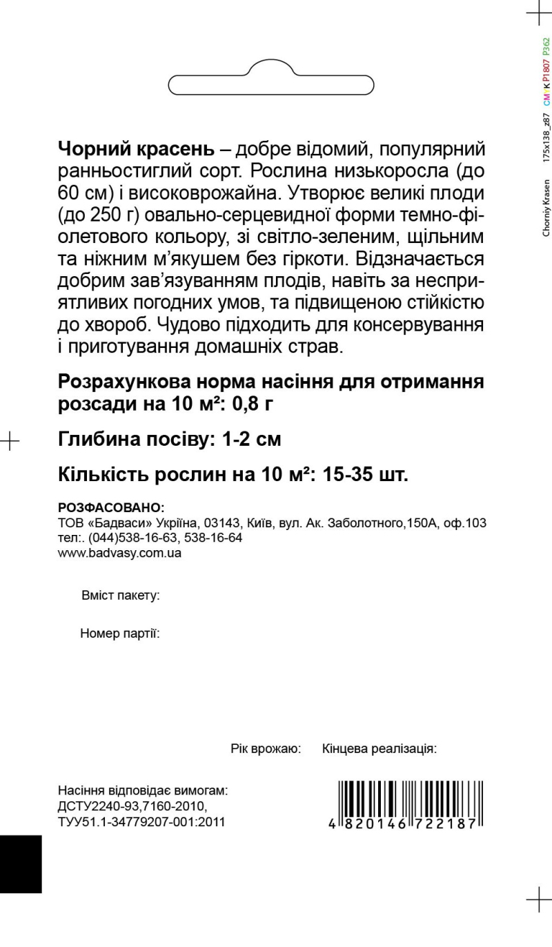 Баклажан Чорний Красень, 0,3 г, Традиція