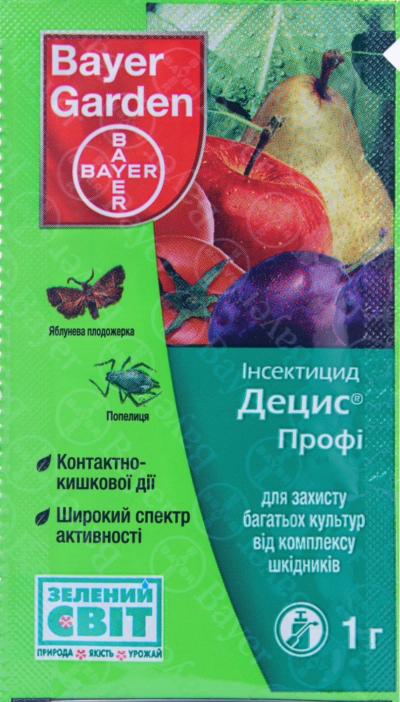 Захищає персик від кучерявості листя, яблуні та груші від парші. Захист від шкідників широкого спектру дії.