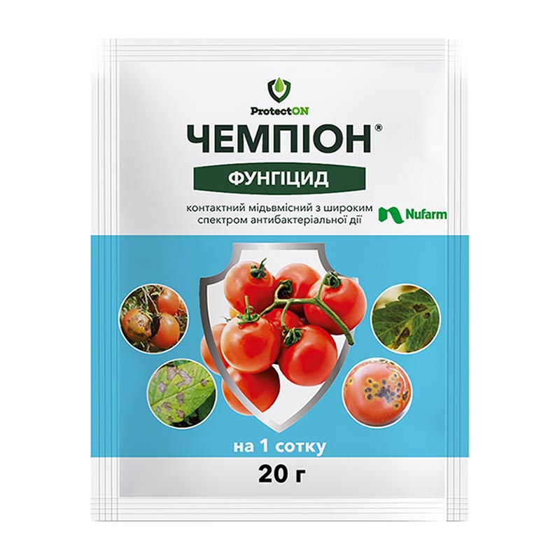 • Чемпіон– препарат на основі міді з відмінною здатністю прилипати і стійкістю до опадів.