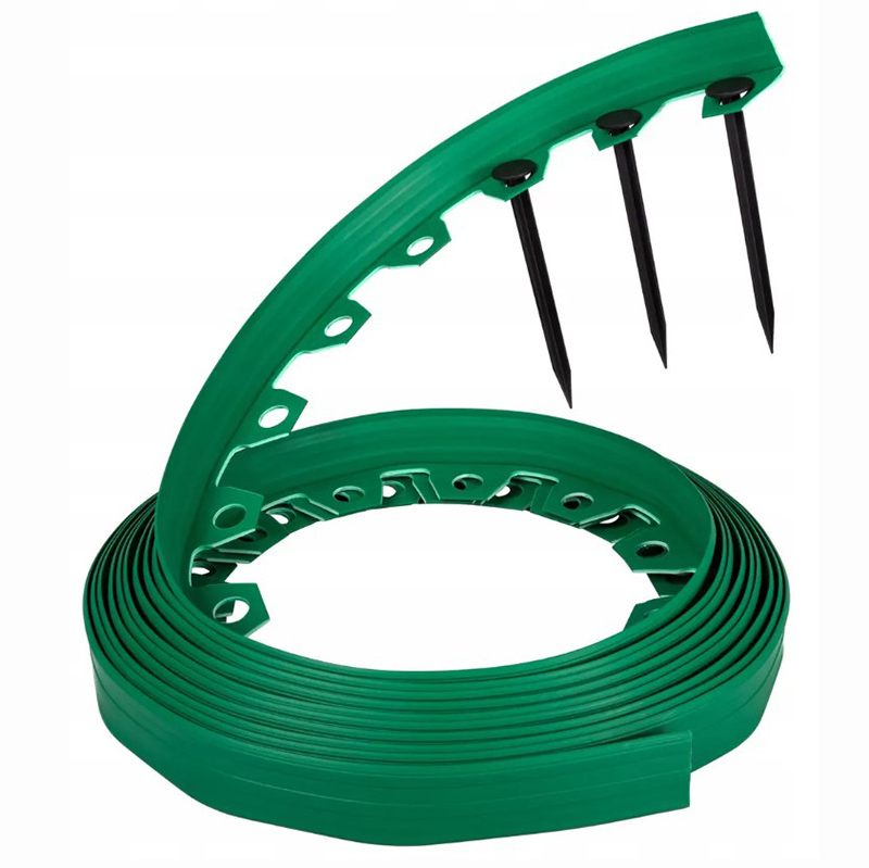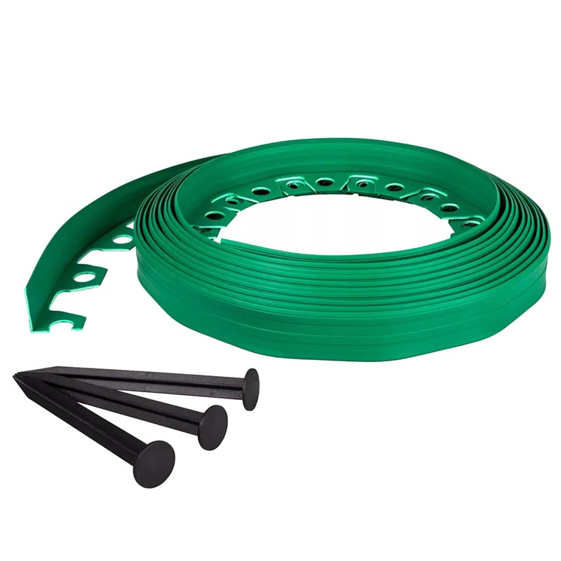Виготовлений із високоякісного атмосферостійкого пластику, що витримує різні погодні умови і дозволяє запобігти переростанню трави. Матеріал дуже гнучкий, завдяки чому можна створювати будь-які унікальні композиції. 10-метровий відрізок дозволяє надати будь-яку форму без трудомісткого з'єднання коротких деталей. Це дозволяє красиво зробити пристовбурні окантовки навколо дерев, декоративних рослин і, перш за все, надати неповторного вигляду кожному саду.