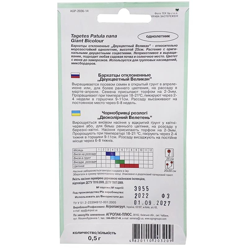 Чорнобривець Двоколірний Велетень, 0.5 г, Агропакгруп