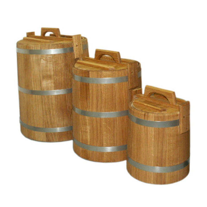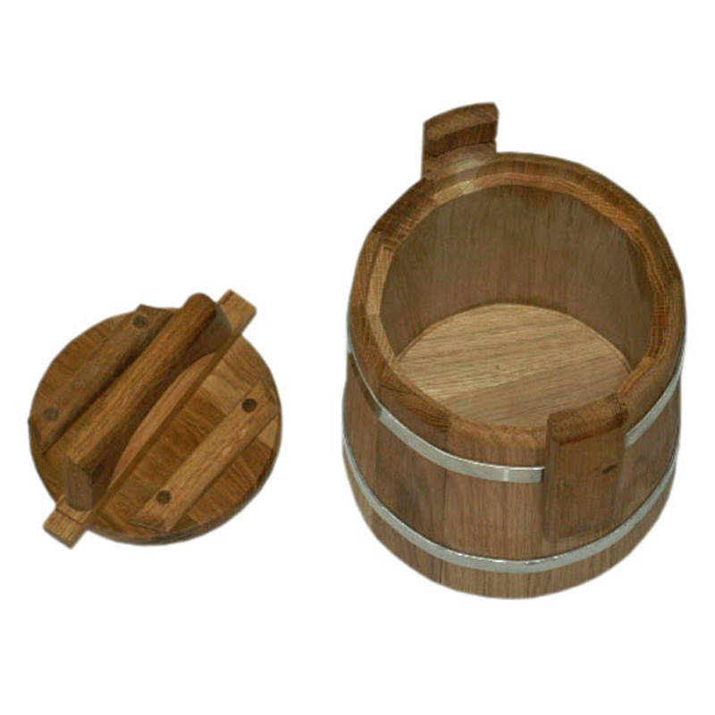 Діжка для солінь дубова з гнітом. Діжка дубова - відмінний варіант для соління і заготовок в невеликих обсягах. Прекрасний варіант для зберігання харчових продуктів, навіть круп і приправ. Дубова діжка виготовлена з міцної добірної деревини, без застосування хімічних речовин. Гарна ідея для подарунка, вигідно прикрасить інтер'єр кухні. Діжка з натурального дуба дозволяє зберігати свіжість і смакові якості продуктів, підвищує їх харчову цінність, насичує чудовим ароматом здоров'я!