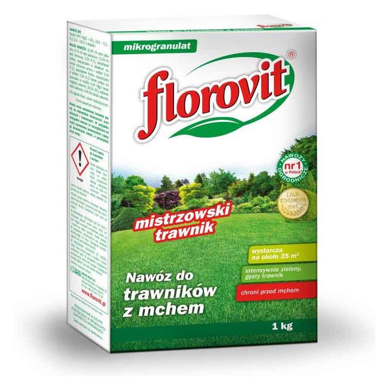 Добриво для газонів з мохом + залізо, Флоровіт – ефективний засіб для підживлення газонної трави, що має збалансований склад. Комплекс мінеральних компонентів та високий вміст заліза забезпечують газонні трави повноцінним живленням. Газон швидко виснажує ґрунт, тому що для активного росту трави, яку зазвичай косять кілька разів за сезон, потрібна велика кількість поживних речовин. Без регулярного підживлення трава буде слабкою, досягти високої естетичності газону не вийде. Добриво для газону Флоровіт варто купити з тим розрахунком, щоб мати можливість вносити його у ґрунт регулярно протягом усього сезону. Постійні підживлення сприяють утворенню щільного та красивого трав'яного покриву насиченого зеленого кольору. Florovit для газону з високим вмістом заліза за умови дотримання рекомендованих виробником дозування та частоти підживлення здатний повністю задовольнити потребу в поживних елементах газонних трав будь-яких видів. Особливо цей препарат є ефективним для догляду за декоративними газонами, які не розраховані на високі механічні навантаження. Добрива Florovit для газону купити в Україні не складно, оскільки вони мають великий попит і завжди є у продажу.