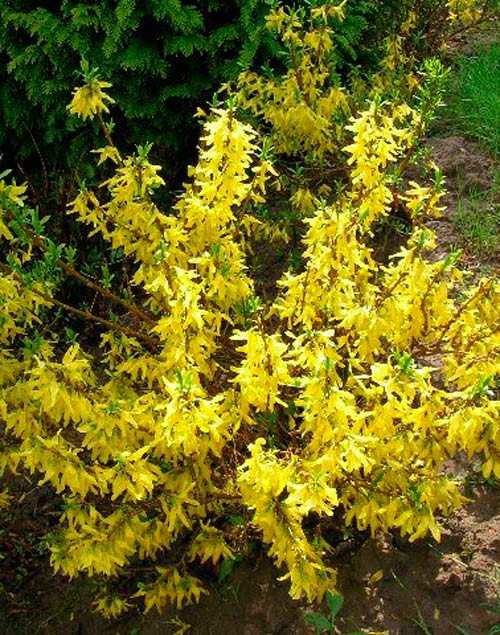 Компактний, до 1,7 м, ранньоквітучий чагарник. Відноситься до родини Маслинових. Починає цвітіння в квітні. Квітки яскраво-жовтого забарвлення, діаметром 2-3 см, дзвонові форми, зібрані в суцвіття.