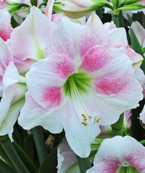 Гіппеаструм Rosy Star або «Рожева зірка» - зачаровує великими квітами ніжним забарвленням. Він належить до групи Крупноквіткові гіппеаструми (Galaxy Group). Квітка кидається в очі завдяки своїм білим пелюсткам з рожевим рум'янцем і зеленим світінням в центрі. Розмір квітки становить близько 22 см в діаметрі. Стебло міцне, трубчасте. Листя блискучі, ремневидні, темно-зелені. Цибулина виробляє зазвичай по два-три квітконоса і кожен з них дає по 4-5 квітки. Висота рослини - близько 40-50 см. Час цвітіння: через 6-10 тижнів після посадки.