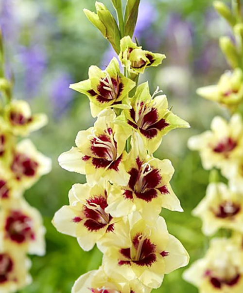 Гладіолус Etty – компактний сорт з яскравим цвітінням. Розрахований для декорування невеликих клумб, альпійських гірок, бордюрів, рокаріїв. Рослина випускає мечовидне соковите листя і квіткову стрілу з 12-15 бутонами. Розпускаються бутони у липні-вересні. Воронкоподібна квітка, діаметром 5-12 см, кремово-жовта з бордово-червоними плямами в центрі. Можливе вирощування у горщику для прикраси балкона, тераси, світлої частини двору. Сорт добре висаджувати групою з дистанцією 20-30 см. Висота квітконоса 50-80 см, завширшки 10 см.