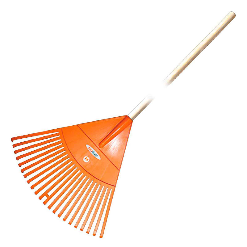 Віяльні граблі з дерев'яним держаком виготовлені з високоякісного пластику. Вони мають внутрішню різьбу для установки дерев'яного держака. Призначені для прибирання опалого листя, скошеної трави та інших садових робіт.