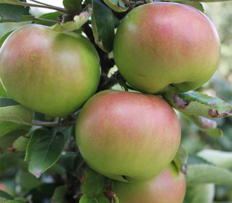 Яблуня колоновидна Трайдент - відмінний осінній сорт Англійської селекції. Плоди середнього розміру 115-140гр, зеленувато-жовтого кольору з темно-червоним яскравим рум'янцем практично по всьому плоду. М'якоть кремова, соковита, дрібнозерниста, середньої щільності. Смак кисло-солодкий, свіжий, приємний.