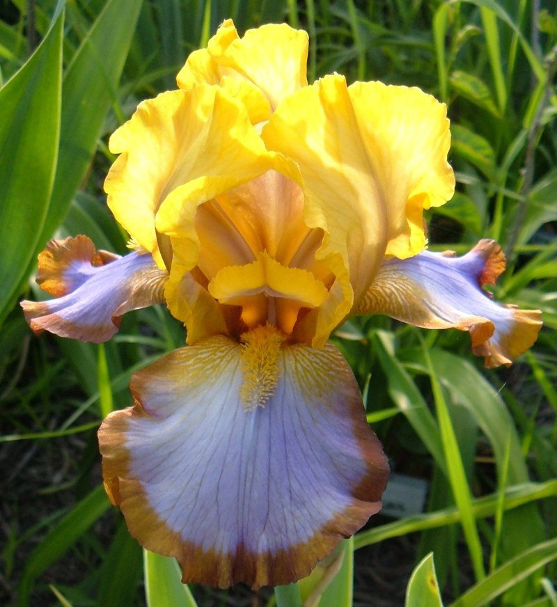 Ірис Brown Lasso - вирощуючи цей бородатий ірис буде доданий на своїй клумбі незвичайні, безтурботні відтінки. Утворює великі квіти яскраво-жовтого вкольору, а в центрі нижніх, злегка закручених пелюсток ніжно-лілові вставки. Діаметр суцвіття 10-15 см. Аромат витончений, тонкий і солодкий.