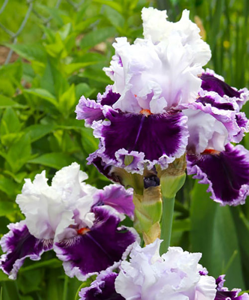 Висота квітконоса 80-90 см. Діаметр суцвіття 12-15 см. Кількість суцвіть на одному квітконосі до 3-5 витончених бутонів. Пелюстки білі з бузковим відтінком біля основи. Час цвітіння бородатого ірису у березні – травні протягом 15-17 днів. Аромат легкий, практично невідчутний, солодкуватий.
