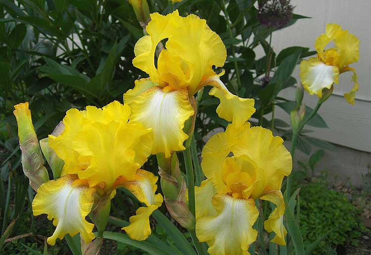Ірис Radiant Apogee - яскравий і оригінальний сорт ірисів, котрий настільки розкішно виглядає на клумбі, що порівняти його можна хіба що з орхідеями. І це абсолютно виправдано! Має насичено-жовті суцвіття з білою краваткою на пелюстках. Чудово буде виглядати на всіх ділянках Вашого саду, не менше красиво і в букеті, який зберігає свіжість до 10 днів. Висаджувати іриси бородаті потрібно на добре освітлених в першу половину дня ділянках, захищених від протягів, щоб був відтік талих вод і хороший дренаж. У неглибоку лунку насипають горбком пісок, зверху укладають горизонтально кореневище бородатого ірису, розправляють коріння, засипають ґрунтом таким чином, щоб верхня частина кореневища залишалася над рівнем, і добре поливають. Якщо листя починає жовтіти, його можна обрізати, зробивши кінчик листа напівкруглим - це виглядає дуже симпатично, і ваш ірис як і раніше буде прикрашати клумбу, а його кореневище буде набиратися поживних речовин для росту і цвітіння в наступному році. Краще за все після закінчення цвітіння - зрізати квітконоси. Якщо осінь видасться тепла, іриси можуть зацвісти вдруге. Тому взимку потрібно обов'язково присипати землею і торфом, щоб вони не вимерзли. Навесні це покриття обережно прибирають.