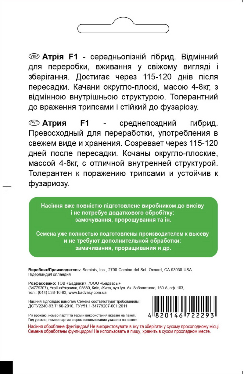 Капуста Атрія F1, 20 шт, Садиба Центр