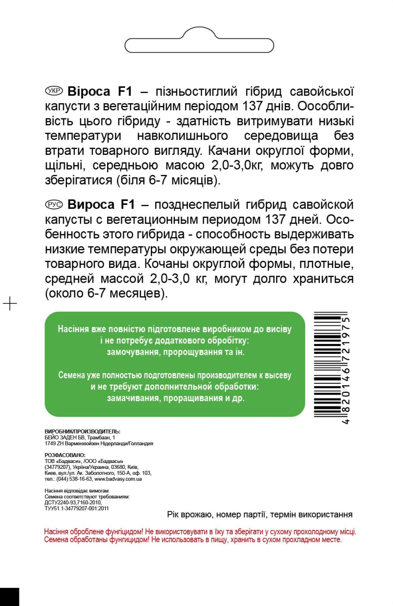Капуста савойська Віроса F1, 20 шт, Садиба Центр