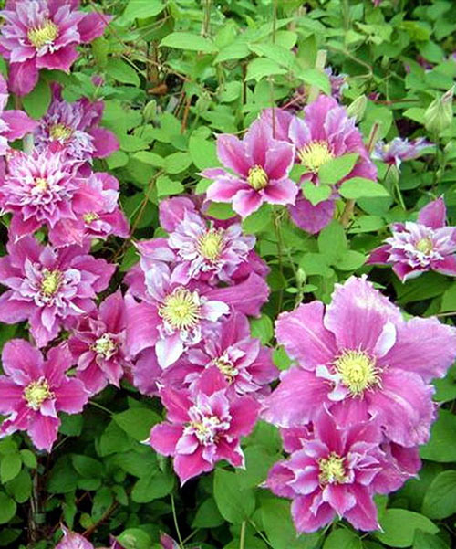 Клематис Piilu (Піілу) - рясно квітучий ранній великоквітковий сорт прибалтійської селекції. Давно відомий сорт серед садівників, який має середню висоту як для клематисів - 1,5-2 м. Лілово-рожеві квітки з більш темною смугою посередині мають діаметр до 15 см. Серцевина квіток яскраво-жовта, а краї пелюсток хвилясті. Для цього сорту характерно подвійне цвітіння, влітку може давати махрові квітки - перше цвітіння, а в кінці літа прості. Віддає перевагу рости на родючому, пухкому ґрунті, на сонячній стороні або в легкій півтіні.