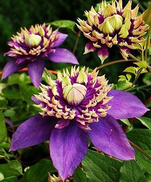 Довжина ліан досягає 2-2,5 метрів. Листя - густе, щільне, глянцеве, темно-зеленого кольору. Квітки махрові незвичайної форми і забарвлення, фіолетово-блакитних відтінків з додаванням рожевих тонів. Діаметр квітів досягає 10-15 см. Цвіте рясно і триває протягом періоду з червня по вересень. Висока зимостійкість.