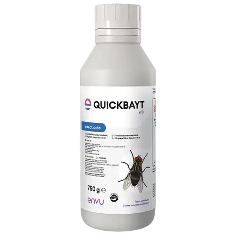 Квік Байт – інсектицидний засіб – приманка, контактно-кишкової дії для контролю чисельності різних видів мух (Musca domestica, Fannia canicularis, Calliphora spp., Lucilia spp, Drosophila spp.), що мають санітарно-гігієнічне значення в побуті, виробництві та тваринництві. Квік Байт являє собою гранули від білого до бежевого кольору, під час розчинення у воді утворює суспензію.
