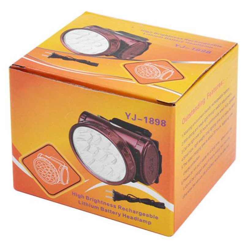Ліхтар має 13 LED-ламп, які забезпечують високий рівень яскравості. Загальний термін служби налобного ліхтаря YJ-1898 – 50000 годин. Час автономної роботи після заряджання становить 20 годин. Відмінно працює за будь-яких погодних умов. Має можливість повороту кута свічення від 0 до 45 градусів. Ліхтар має 2 режими світіння: 1) яскравий, 2) економ режим.