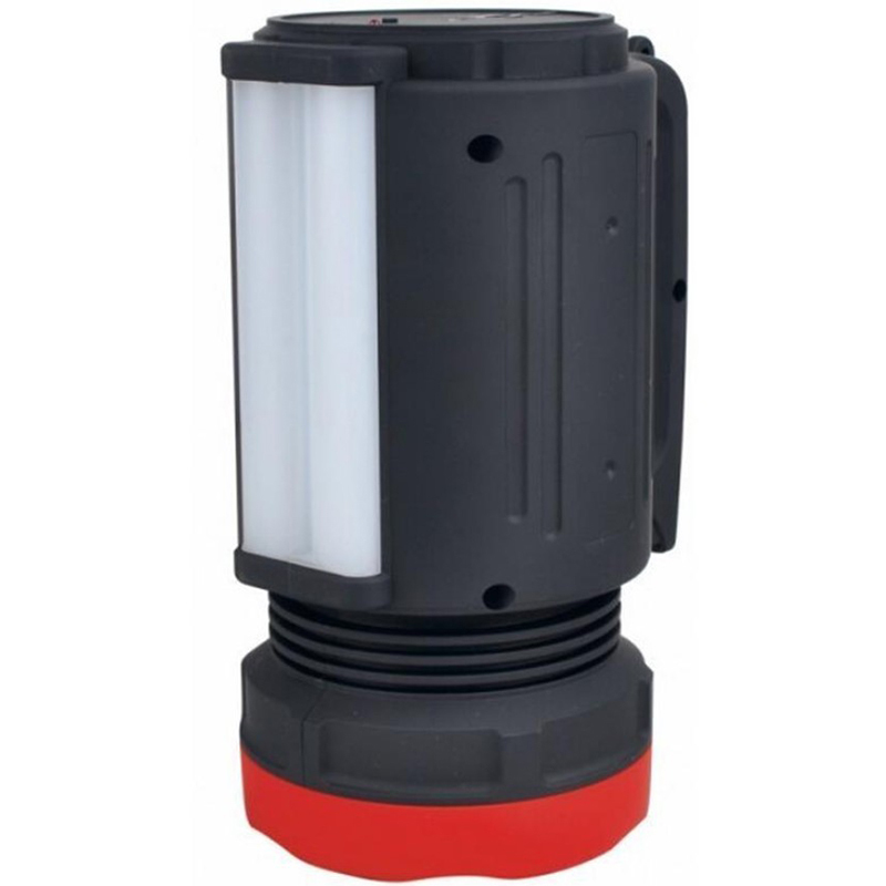 Ліхтар має 23 світлодіода - 1 центральний з двома режимами світіння (100% і 50%), а також 22 SMD-світлодіоди, розташовані на бічній панелі. Корпус виконаний з пластика, стійкий до впливу пилу, вологи, ударів. Зручна ергономічна ручка забезпечує високий комфорт перенесення приладу. У комплект також входить невеликий, але міцний ремінець для максимальної зручності транспортування.