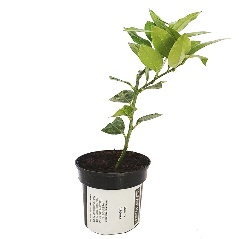 Лимон Еврика - в кліматичній зоні України цитрусові рослини вирощуються тільки в кімнатних або тепличних умовах. Але це не лякає тисячі любителів домашньої екзотики. Історія цього дивного сорту походить з Каліфорнії, вивели цей сорт для промислового і аматорського садівництва шляхом відбору сіянців італійських сортів. Особливість селекції в стійкості до низьких температур, витримує до -5 ° C. Невибагливий до грунтів. Дерево лимона виростає до 1,5 метрів у висоту. Декоративне завдяки красивому, глянцовому листтю темно-зеленого забарвлення і красивим білим квіткам з приємним цитрусовим ароматом. Плодоношення починається з 18 місяці. Плоди виростають великі до 170 грам, соковиті, приємного кисло-солодкого смаку, з високим вмістом вітамінів і мікроелементів.