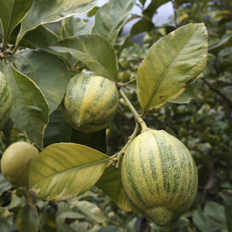 Лимон варієгатний Сангвінеум (limon "Foliis variegatis Sanguineum") - рідкісний, декоративний, ряболистий сорт, гібридна форма незвичайний різновид лимона з соковитою рожевою м'якоттю отримана завдяки схрещування з апельсином. Молодий приріст пурпурового забарвлення, квіти білі, цвітіння відбувається кілька разів на рік. У плодоношення вступає на другий рік.