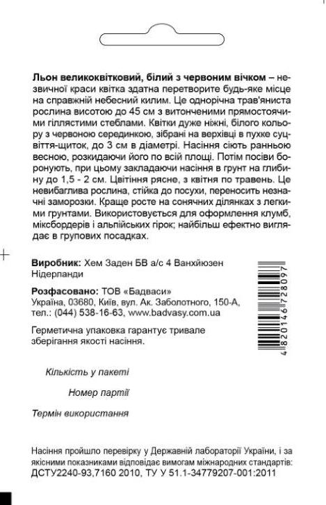 Льон великоквітковий, білий з червоним вічком, 0,5 г, Садиба Центр