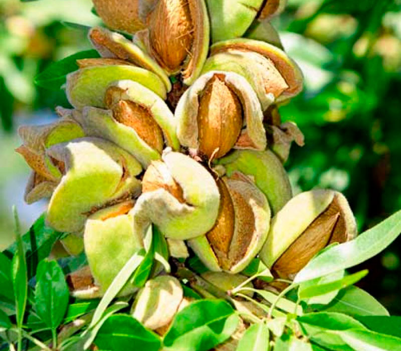 Мигдаль Десертний –сорт з раннім терміном дозрівання. Плоди великі, близько 2,8 г. Шкаралупа неоднорідна, тонка, легко давиться руками. Ядро білого кольору з плівковою шкіркою. Мигдальні горіхи не лише солодкі та смачні, вони дуже корисні. У них міститься 20-30% білка, до 60% жирних олій, 5-7% цукрів, вітаміни В1,В2. Ядра мигдалю без проблем зберігаються 2-3 роки.