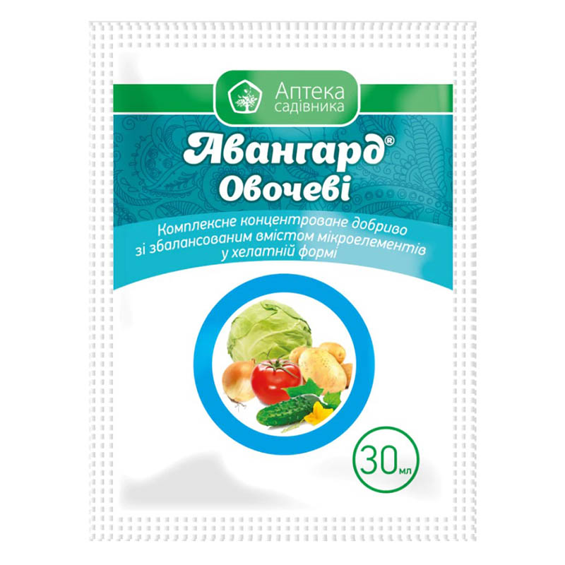 Авангард Овочеві – це комплексне легкодоступне добриво зі збалансованим співвідношенням макро-, мезо- та мікроелементів у хелатній формі. Застосовується для позакореневого підживлення овочевих культур і обробки їх насіння.