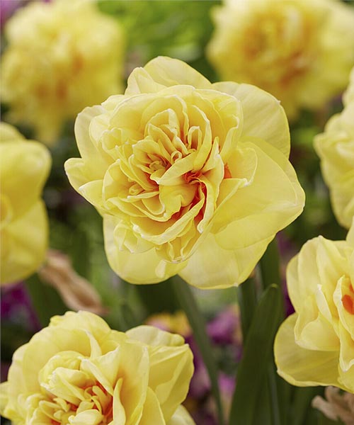 Нарцис Санні Деу (Sunny Day) цей вид є ідеальним доповненням до вашого саду. Завдяки його розкішним махровим квітам канарково-жовтого відтінку з яскраво-помаранчевим центром, він наповнить ваш весняний сад сонячними відтінками. Висота цієї рослини сягає 40 см, а розмір квітки до 10 см. Стебла стійкі до вітру, а листя вузьке та декоративне, що робить цю рослину привабливою протягом усього сезону.