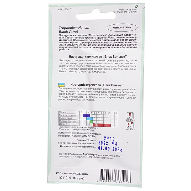 Настурція Блек Вельвет, 2 г, Агропакгруп