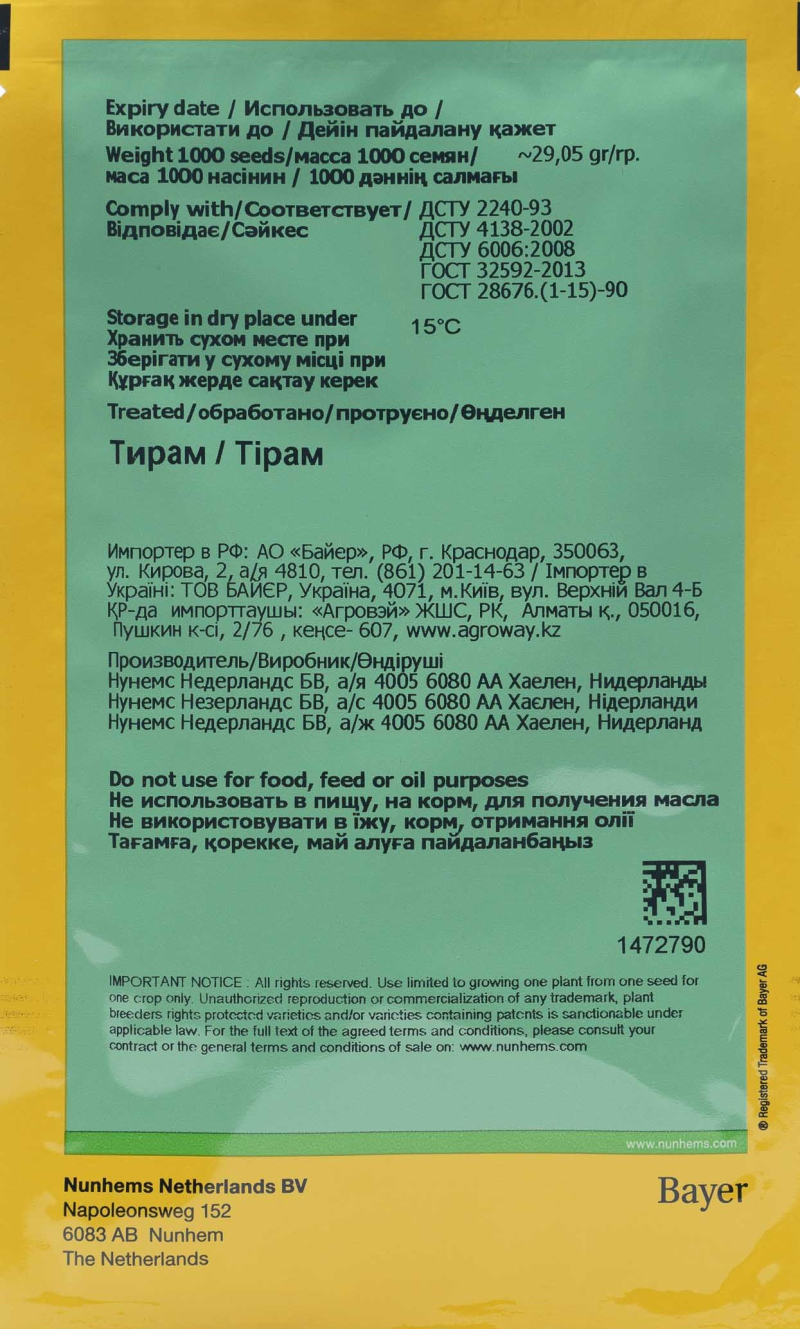 Огірок Наташа F1, 1000 шт, Seminis