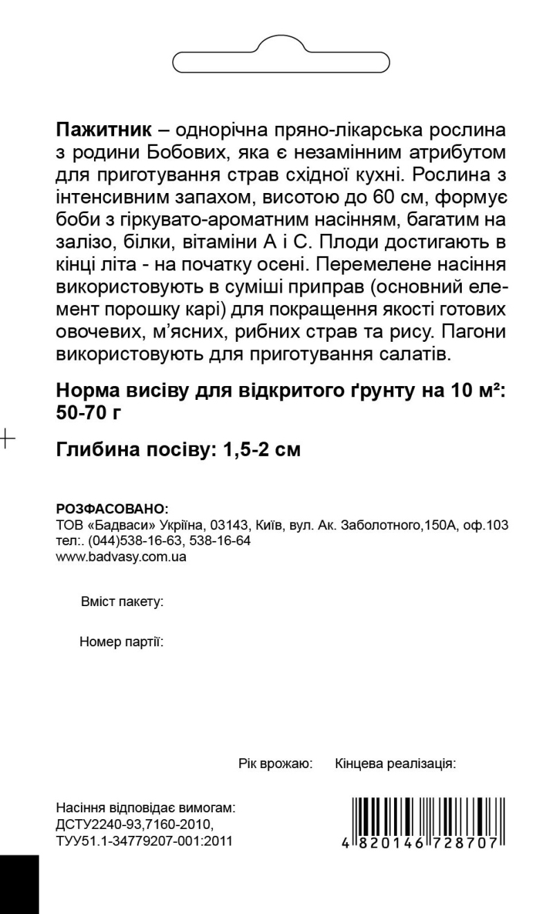Однорічна пряно-лікарська рослина з родини Бобових, яка є незамінним атрибутом для приготування страв східної кухні. Рослина з виду непримітна, висотою до 60 см, має інтенсивний запах та химерної форми боби з гіркувато-ароматним насінням – багатим залізом, білком, вітамінами А і С. Висівають в квітні-травні на глибину 1,5 см. Плоди достигають в кінці літа - на початку осені. Перемелене насіння використовують в суміші приправ (основний елемент порошку каррі) для покращення якості готових овочевих, м’ясних, рибних та страв з рису. Пагони використовують для приготування салатів.