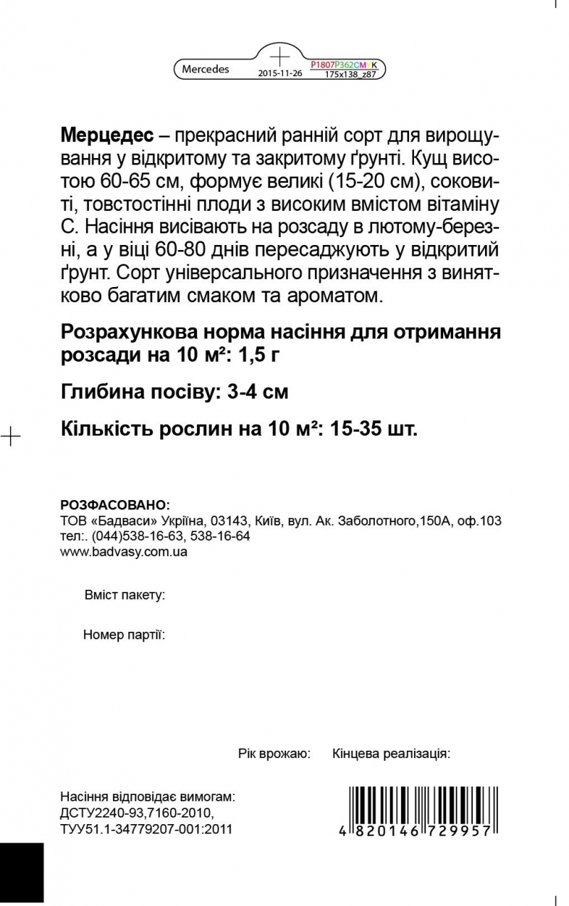 Перець Мерцедес, 0,3 г, Садиба -17%
