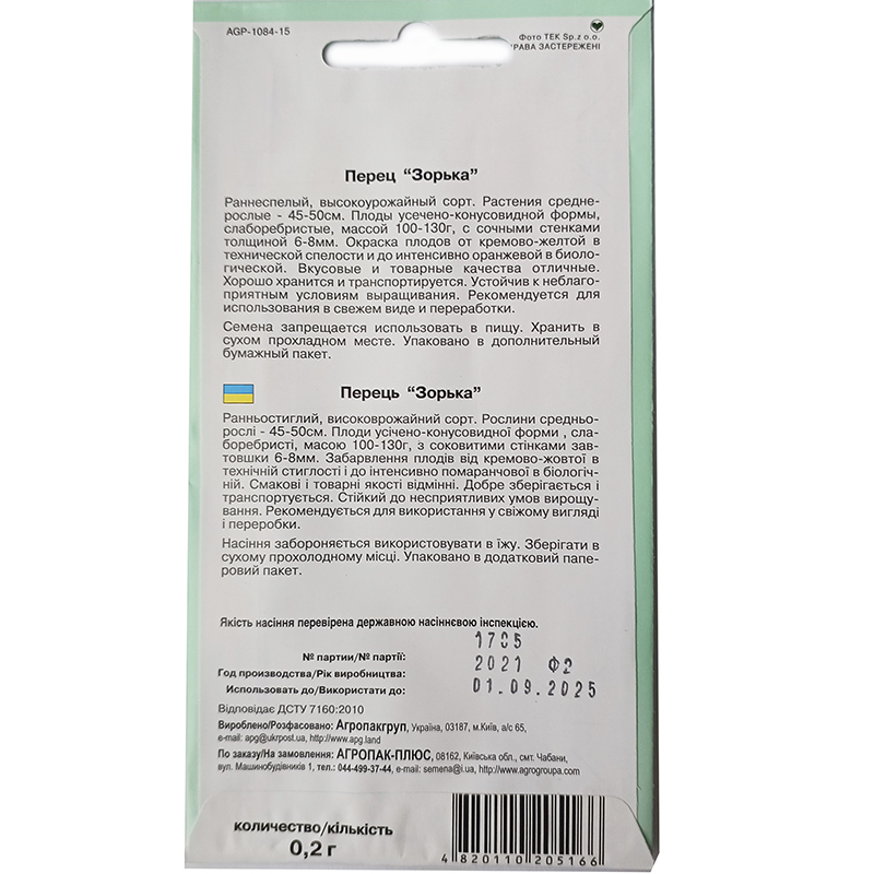Перець Зорька, 0.2 г, Агропакгруп