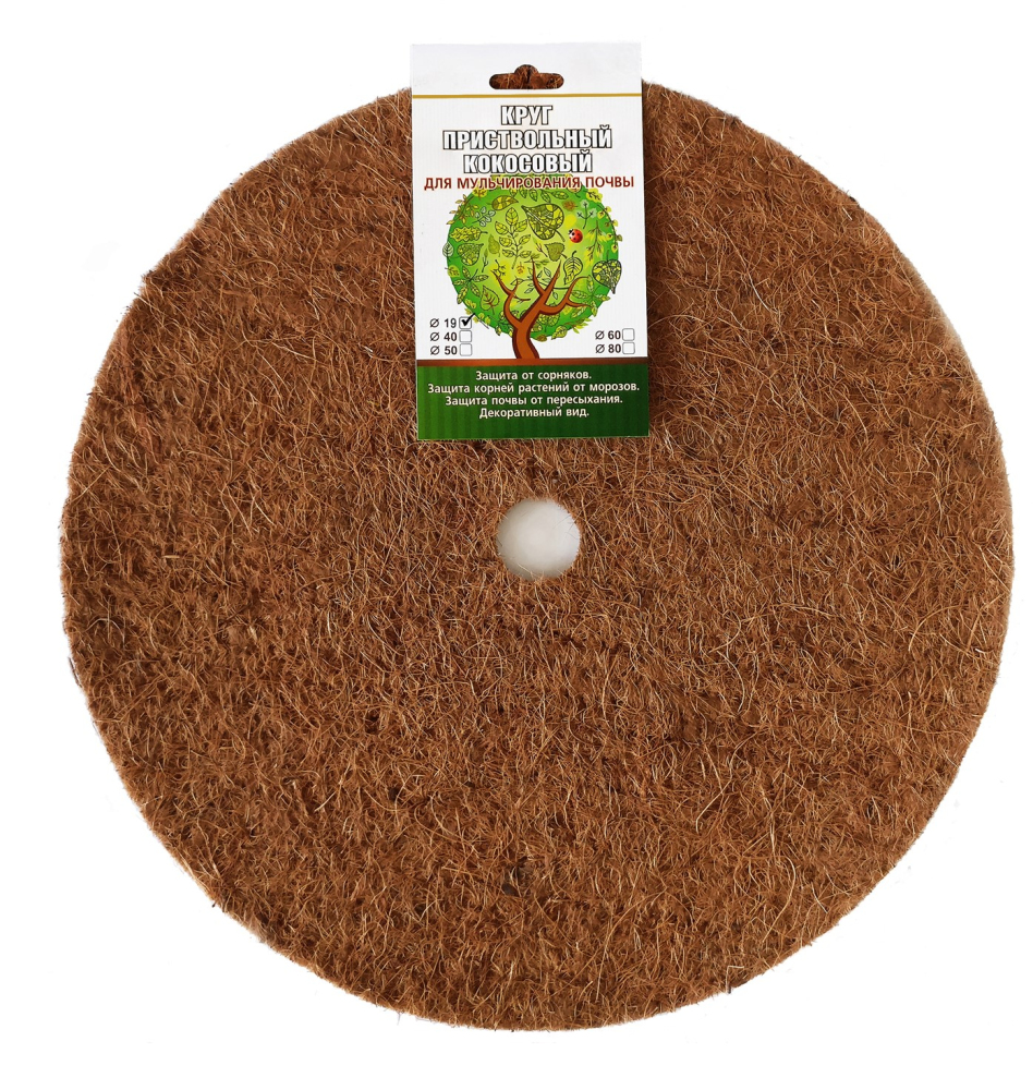 Пристовбурні кола з натурального кокосового волокна - це екологічно чистий матеріал без додавання клею, латексу і хімічних добавок. Виготовляється тільки з натуральних компонентів, методом механічного скріплення кокосових волокон, без використання хімічних клеїв. Ефективно захищає пристовбурні зони від бур'янів і шкідників. Ідеально пропускає повітря і вологу в зону утворення кореневої системи рослин. Ефективно захищає ґрунт пристовбурної зони від перегріву і пересихання. Захищає кореневу систему рослин від морозів. Має натуральний декоративний колір кокосового горіха. Має нейтральну Рh-реакцію, чим вигідно відрізняється від інших компонентів для мульчування, таких як кора сосни, деревні тріски і тирсу та інших. Зручний у використанні при застосуванні різних агротехнічних прийомів: розпушення ґрунту, внесення рідких і сипучих добрив, використання крапельного поливу та інших. Кокосові кола підходять для: всіх видів дерев, всіх видів квітів, всіх видів ягід і для вазонів. Висота кола 10мм, що на 100% краще захищає кореневу систему рослин. Термін експлуатації: 5 - 6 років. Використання мульчують кокосових кіл значно полегшить роботу на вашій садовій ділянці і створить ідеальні умови для зростання і життя Ваших рослин.