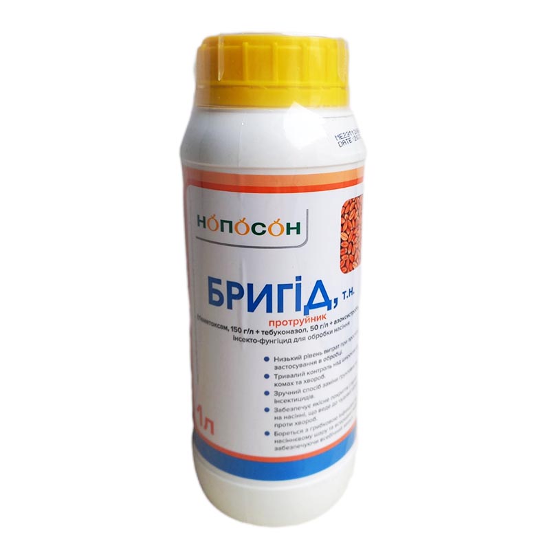 Бригід – це високоефективний інсектицидно-фунгіцидний протруйник насіння, який призначений для захисту насіння від різноманітних захворювань та шкідників під час проростання, сходів та перших стадій розвитку а також забезпечує захист від шкідників та грибків насіння при зберіганні протягом 9 місяців. Засіб також діє як регулятор росту, стимулятор фотосинтезу та росту рослин.