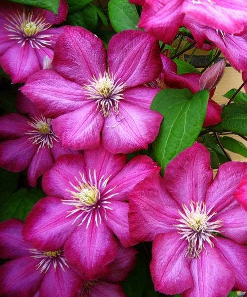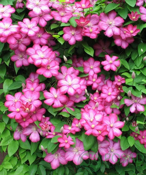 Клематис Ville de Lyon (Вилл де Лион) – великолепный надежный сорт французской селекции. Многолетняя лиана, достигающая в высоту до 3-4 м. Цветки карминово-красные, с возрастом приобретают фиолетовый оттенок. Кончики и края чашелистиков загнутые. Цветки средние, диаметром до 12 см. Пыльники ярко-желтые. Цветет «Виль де Лион» на побегах текущего года, с июля по сентябрь. Цветение обильное и продолжительное. Сорт быстрорастущий. Саженцы нужно высаживать на хорошо освещенных солнечными лучами участках сада. Группа обрезки – 3 (сильная). Осенью необходимо обрезать на высоте до 30 см - 50 см. Клематис любит не сырую землю, чтобы вода не застаивалась. В идеале заранее нужно подготовить грунт для посадки, это поспособствует хорошему развитию корневой системы. Взрослое растение клематиса нормально себя чувствует в обычной почве. Корни клематиса не любят высокой температуры почвы, поэтому рекомендуем использовать мульчирование, тем самым вы сохраните влагу в почве и не допустите перегрева почвы. Полив должен быть умеренный, не слишком частый, но обильный.