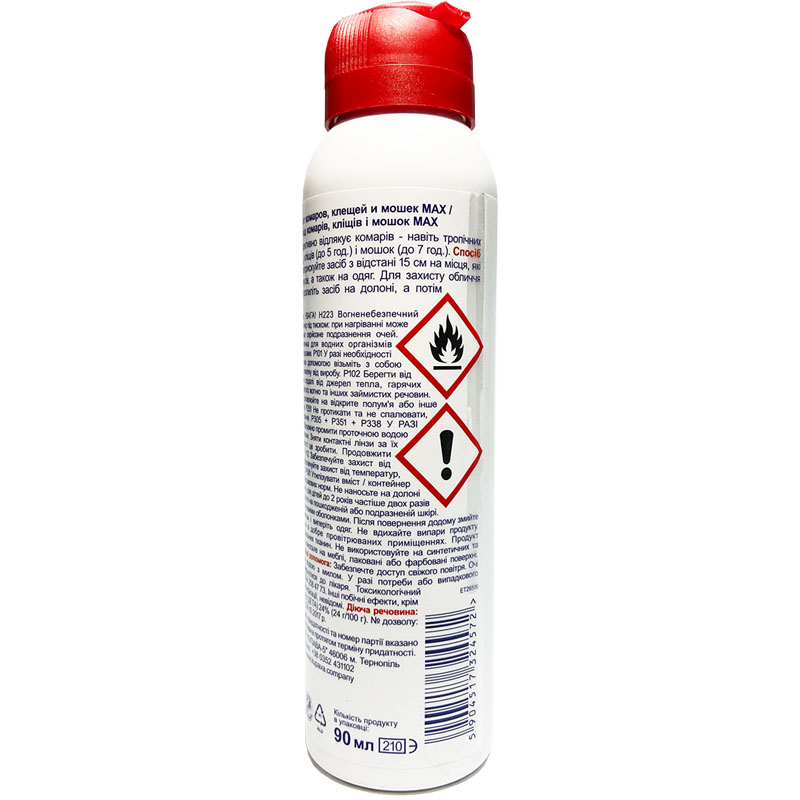 Аэрозоль от комаров и клещей Мах – это профессиональный аэрозоль, применяемый для нанесения на тело и одежду, с целью защиты от укусов комаров, москитов, клещей и насекомых.