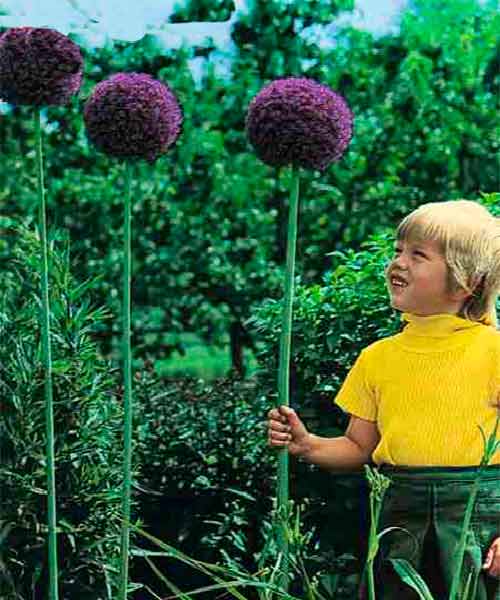 Аллиум гигантский Giganteum (Гигантеум) - сорт декоративного лука с огромными соцветиями. В высоту достигает до 1,5 м, так что его будет видно с любого угла вашего сада. Соцветие состоит из сотен маленьких цветочков, котрые образуют шар пурпурно-розового цвета. В диаметре достигает до 25-30 см. Цветет со средины мая около месяца. Лучше всего высажывать Аллиум осенью за 3-4 недели до наступания зимних холодов на глубину 15-20 см и на расстоянии 15-20 см. При посадке и выращивании не рекомендуется применять свежую органику, так как луковица может погибнуть.