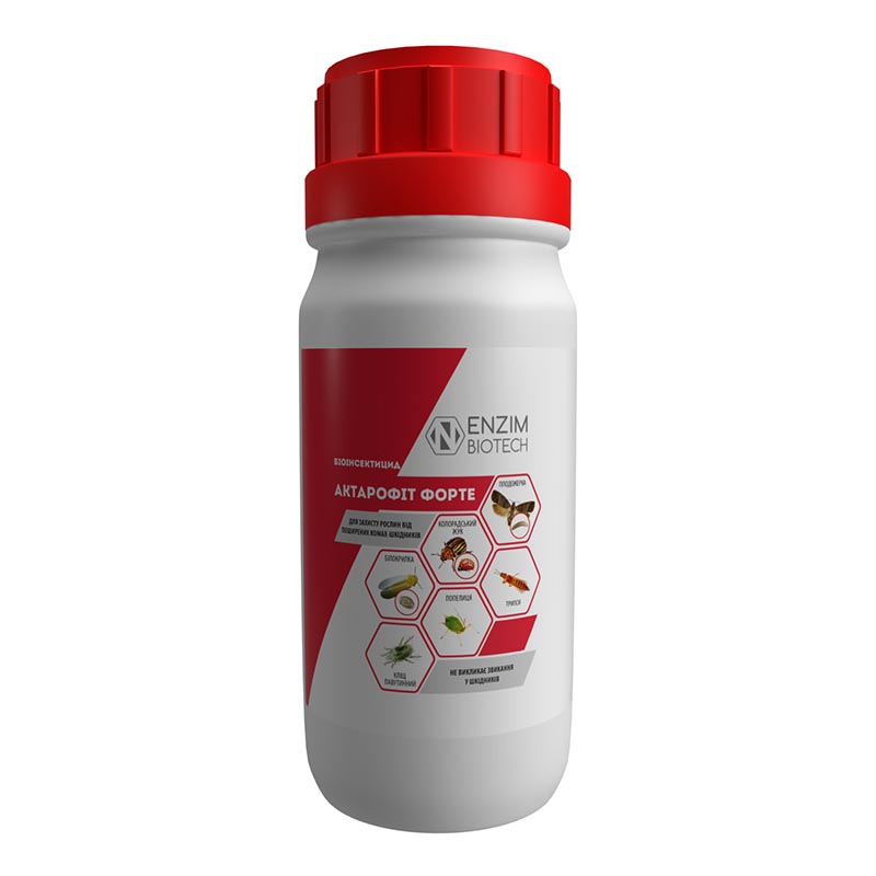 Эффективность препарата: Первые признаки действия препарата – прекращение питания, можно наблюдать через 6–8 часов при обработке против листогрызущих вредителей и через 12–16 часов – против сосущих. Массовая гибель вредителей наступает на 2-3 сут после обработки, а максимальный эффект достигается на 3-5 сут. Защитный эффект при благоприятных условиях длится до 20 дней. Актарофит Форте в регламентированных нормах нетоксичный для кокценилидов (солнышек), пауков, хищных клопов, паразитирующих насекомых, турунов, дождевых червей и других. Способность авермектинов быстро разлагаться в окружающей среде препятствует их накоплению в плодах, овощах и почве. Препарат можно использовать в период сбора урожая на овощных и плодово-ягодных культурах. Последняя обработка может быть произведена за 48 часов перед уборкой урожая. Для повышения эффективности рекомендуется использовать с адъювантом Адюмакс.