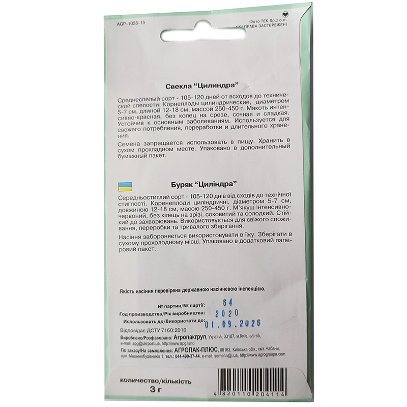 Свекла столовая Цилиндра, 3 г, Агропакгрупп