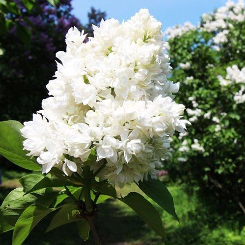 Сирень Леси Украинки – самый махровый сорт, поздне-цветущей сирени украинской селекции. Благодаря выносливости и неприхотливости, а также высоким декоративным качествам он долгие годы будет радовать своей красотой и свежестью. Листопадный красиво-цветущий куст с крепкими основными побегами и вертикальной, раскидистой, округлой кроной, достигает 4,5 м в высоту и 3-5 м в ширину. Ежегодный прирост 20 см. Листья сердцевидные, плотные, блестящие, светло-зеленые, долго держатся на растении. Цветение начинается в мае. Бутоны светло-зеленой окраски. Цветки ароматные, снежно-белые, состоят из 35-50 и более лепестков, что делает этот сорт одним из самых махровых среди сирени. Они собраны в крупные, широко-пирамидальные, плотные соцветия, до 25 см длиной. Сорт светолюбивый, может расти в полутени, морозо- и ветроустойчив, выдерживает городские условия, предпочитает умеренно влажные, свежие, плодородные, супесчаные или суглинистые, хорошо дренированные почвы. Рекомендуется для солитерных и групповых посадок в создании садовых композиций, в парках, больших садах и приусадебных участках. Может использоваться для свободно растущих живых изгородей.