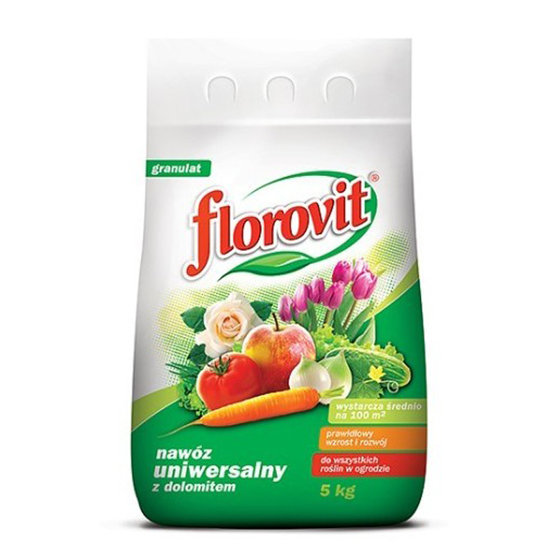 Флоровит универсальный – удобрение с доломитом N:P:К-11,4:9,2:16,8. В состав также входит: сера, магний, бор, медь, молибден. Удобрение содержит набор питательных компонентов в соответствующих пропорциях, необходимых для правильного роста и развития ряда групп растений. Использование удобрения гарантирует получение полноценных плодов и превосходный внешний вид цветов, декоративных деревьев и кустарников. В составе удобрения имеется доломит, благодаря чему удобрение оказывает окисляющее действие. Преимущества использования удобрения: - обеспечивает равномерный рост и развитие растений, а также улучшает цветение и плодоношение. - содержит полный набор питательных компонентов, а также доломит, благодаря чему оказывает легкое окисляющее действие.