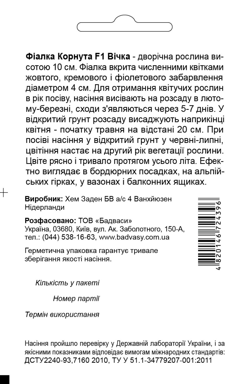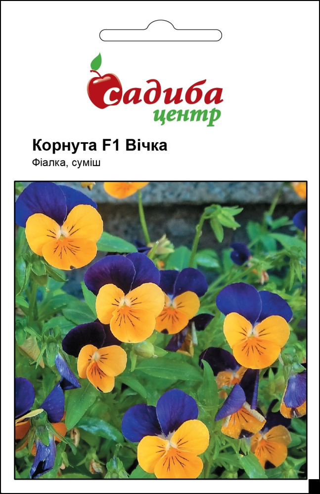 Фиалка гибридная Корнутая Очки - двухлетнее растение высотой 10 см. Фиалка покрыта многочисленными цветками желтого, кремового и фиолетовой окраски диаметром 4 см. Для получения цветущих растений в год посева, семена высевают на рассаду в феврале-марте, всходы появляются через 5-7 дней. В открытый грунт рассаду высаживают в конце апреля - начале мая на расстоянии 20 см. При посеве семян в открытый грунт в июне-июле, цветение наступает на второй год вегетации растения. Цветет обильно и продолжительно в течение всего лета. Эффектно выглядит в бордюрных посадках, на альпийских горках, в вазонах и балконных ящиках.