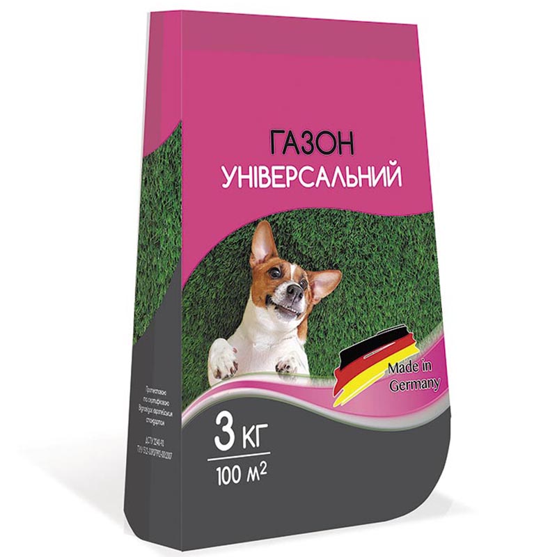 Газонная трава Универсальная – это декоративная травосмесь для создания равномерного газона многоцелевого назначения. Можно использовать как в затененных местах, так и на солнечных участках. Состав: Костица красная красная REVERENT – 10%; Райграс пастбищный многолетний HENRIETTA – 15%; Райграс пастбищный многолетний FANCY – 45%; Костица тростниковая BORNEO – 5%; Райграс однолетний NENDOZA – 25%. Подготовка участка – Время посева: с начала весны до середины осени. – На участке удалить сорняки, камни, мусор. – Грунт перекопать на глубину 15-20 см, поверхность тщательно выровнять граблями. – Уплотнить катком или притоптать (чтобы не был слишком рыхлым). Посев – Семена равномерно распределить по всей области (норма высева 1 кг на 30 м2). – Посев проводить перекрестно: одну половину семян в одном направлении, вторую – перекрестно первой. – Выровнять граблями засеянную площадь, чтобы закрыть семена в грунт на глубину 0,5-1 см. – Провести катки засеянного участка (лучше ребристыми катками). – 3-4 недели требуется постоянный полив методом дождевания (для лучшего сходства). Уход – При достижении газоном высоты 10 см, производится первое скашивание кончиков. – При осеннем посеве первое скашивание проводят весной. Дальнейший уход – Регулярная стрижка (все последующие скашивания можно производить на желаемую высоту). – Достаточный полив методом дождевания (утром или вечером. А в очень жаркие дни 2 раза в день, но не допускать образования луж). – подкормка удобрениями с высоким содержанием азота (1 раз весной и 1 раз в середине лета – удобрения с высоким содержанием азота; 1 раз осенью – с низким содержанием калия и фосфора).