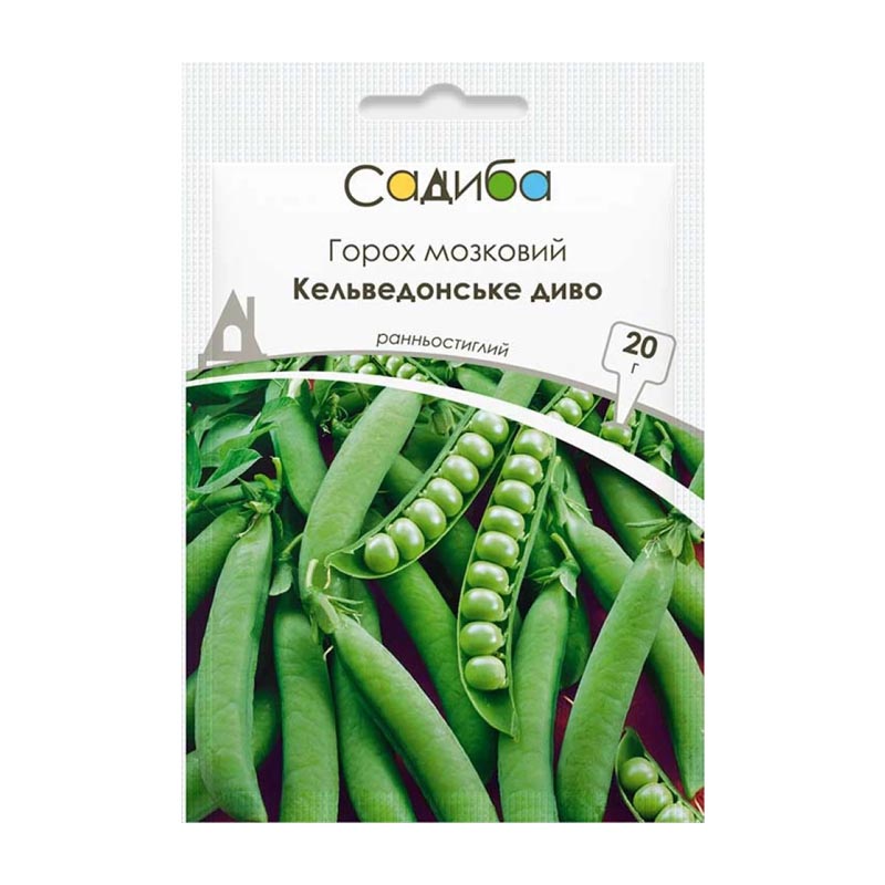 Кельведонское чудо - овощной горох. Раннеспелый, низкорослый (45 - 60 см) сорт. Используется для употребления в свежем виде, переработки и консервирования зеленого горошка. Стручки длинные, расположены по два на квитконожци, содержащих 8 - 9 светло - зеленых горошин, сладких на вкус. Устойчив к неблагоприятным условиям выращивания.