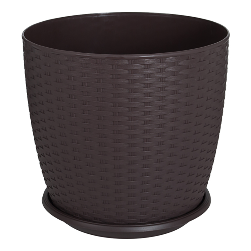 Горшок Ротанг из полипропилена оформлен настолько необычно, что могут использоваться для оформления как комнат, так и элементов садовой архитектуры. Подходят для посадки небольших деревьев и растений с разветвленной корневой системой.